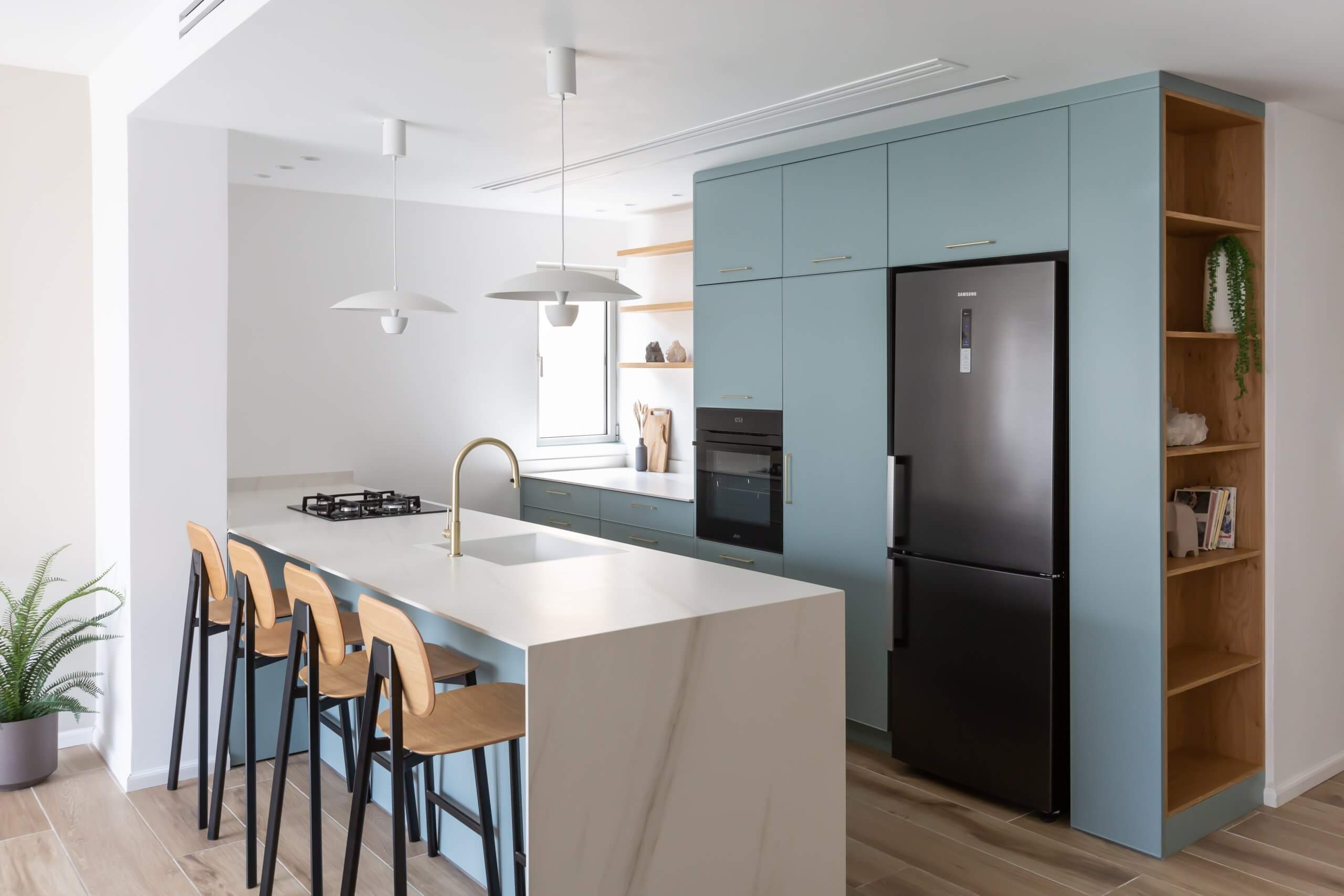 מבית סבתא שורשי לדירת נופש אורבנית בלב תל אביב. סמוך לקו החוף, תוכנן חלל עם רוח של התחדשות צעירה השואב השראה מהדיאלוג שבין חול ומים. פלטת גוונים מרגיעה של מוקה, ירקרק וכחול. מקום לרגעים חדשים של שקט.