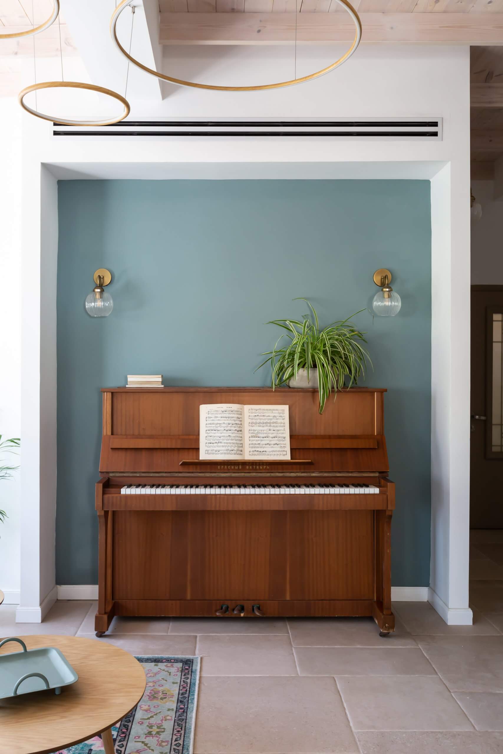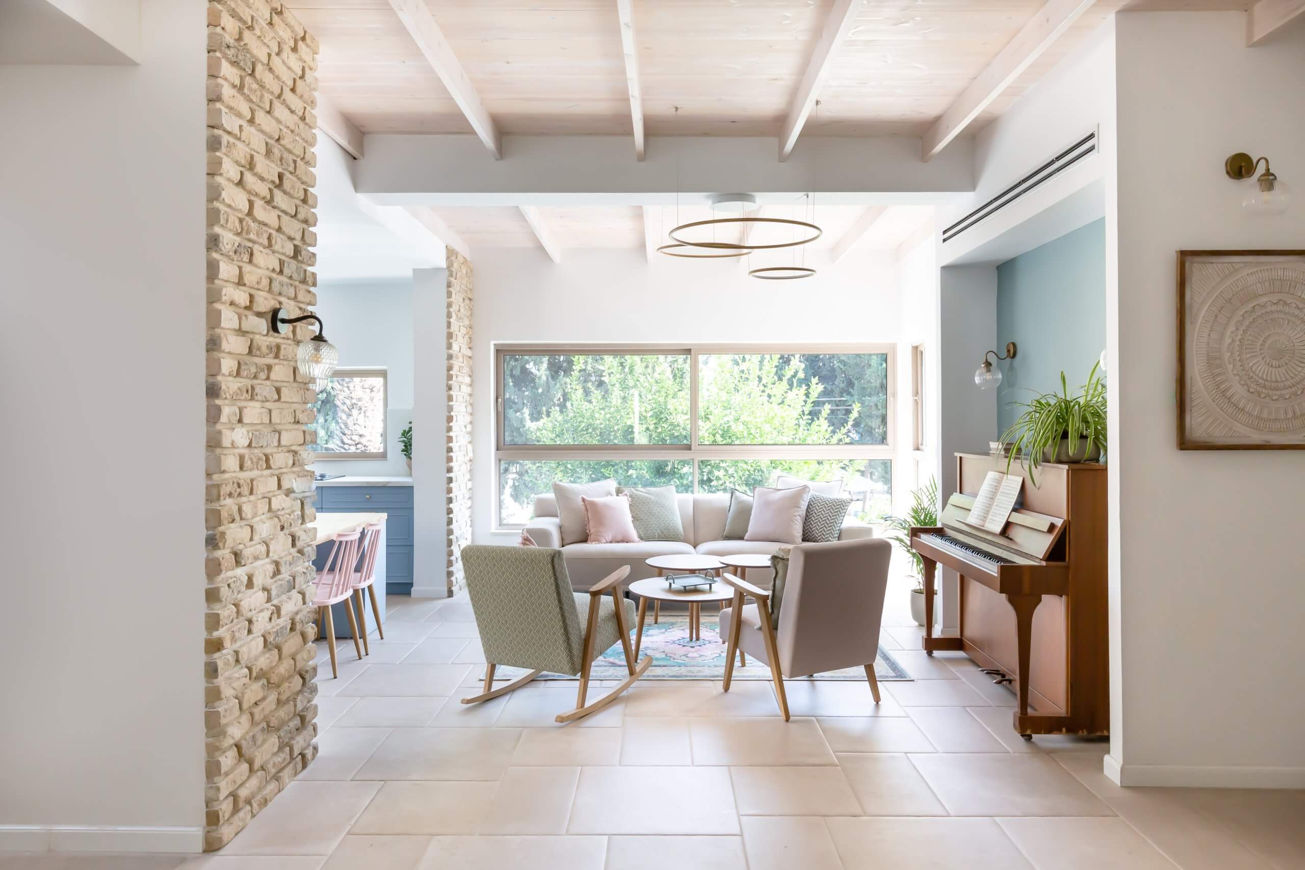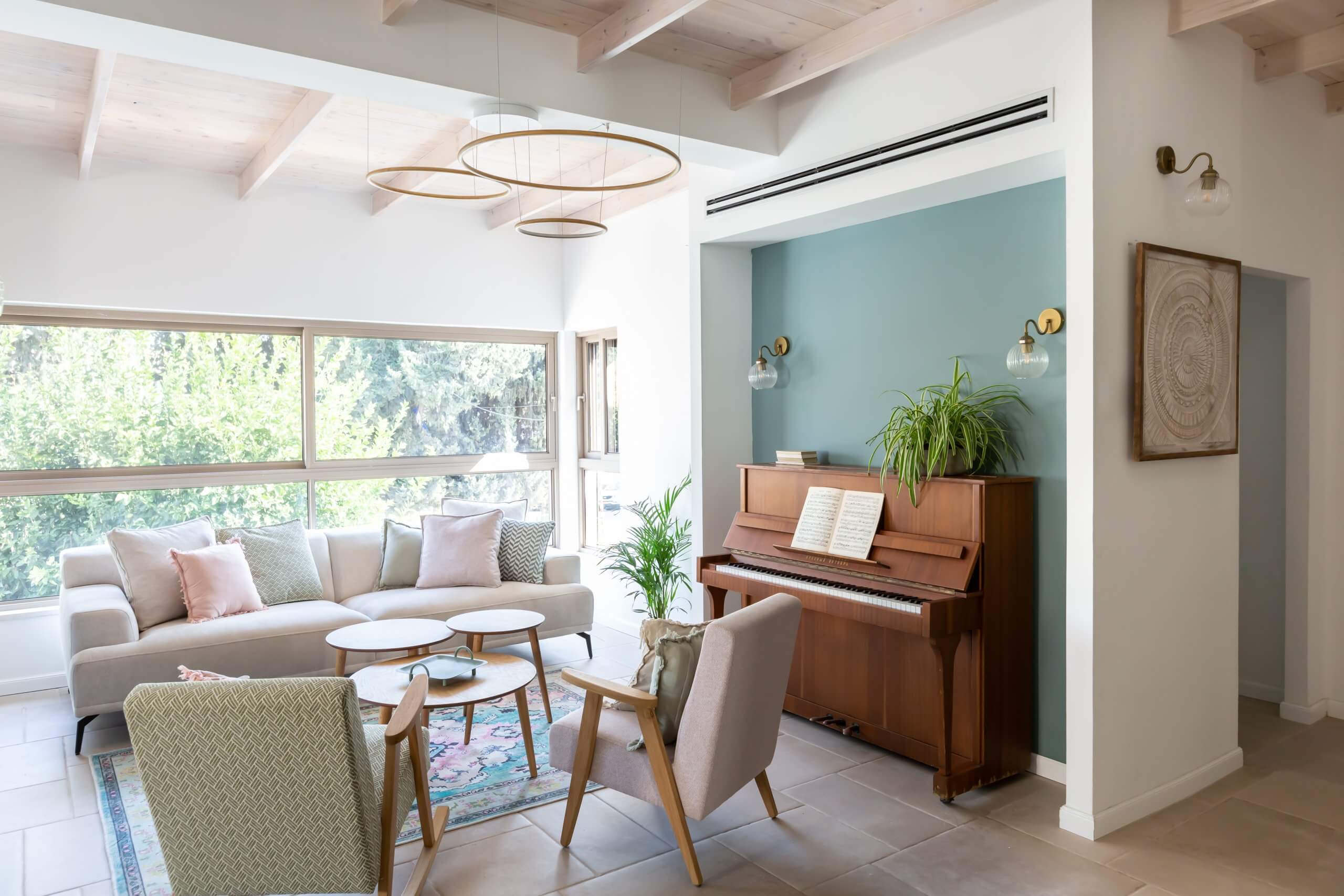 בית שנולד מתוך אומץ ובחירה חופשית עבור אישה שהיא השראה. הפסנתר, הלב הפועם של החלל, מכתיב קצב של צבע ושמחה המשתלב בפלטה נועזת של טורקיז וורוד תחת תקרת עץ מולבנת. חיבור הרמוני וייחודי המשקף אישיות צבעונית, מוזיקלית ומלאת חיים.