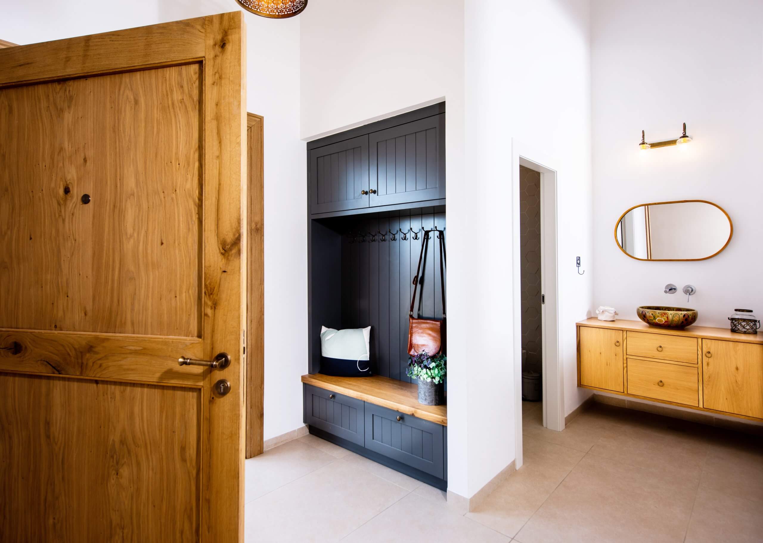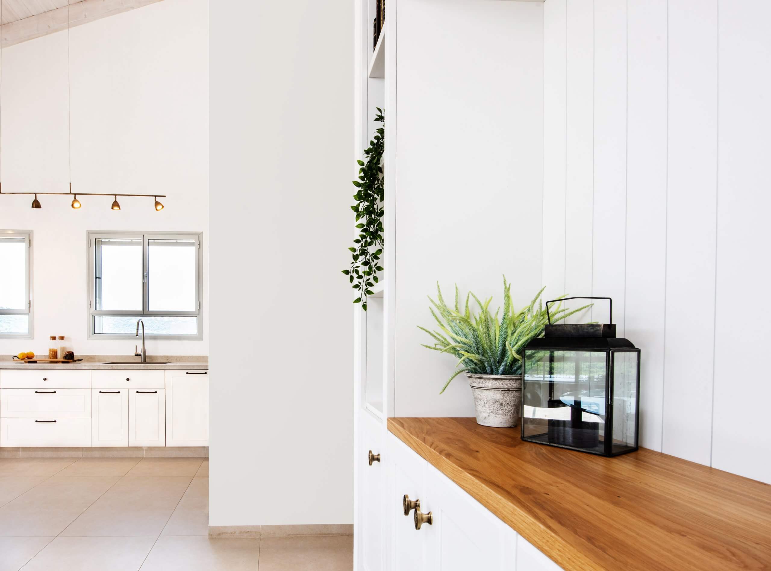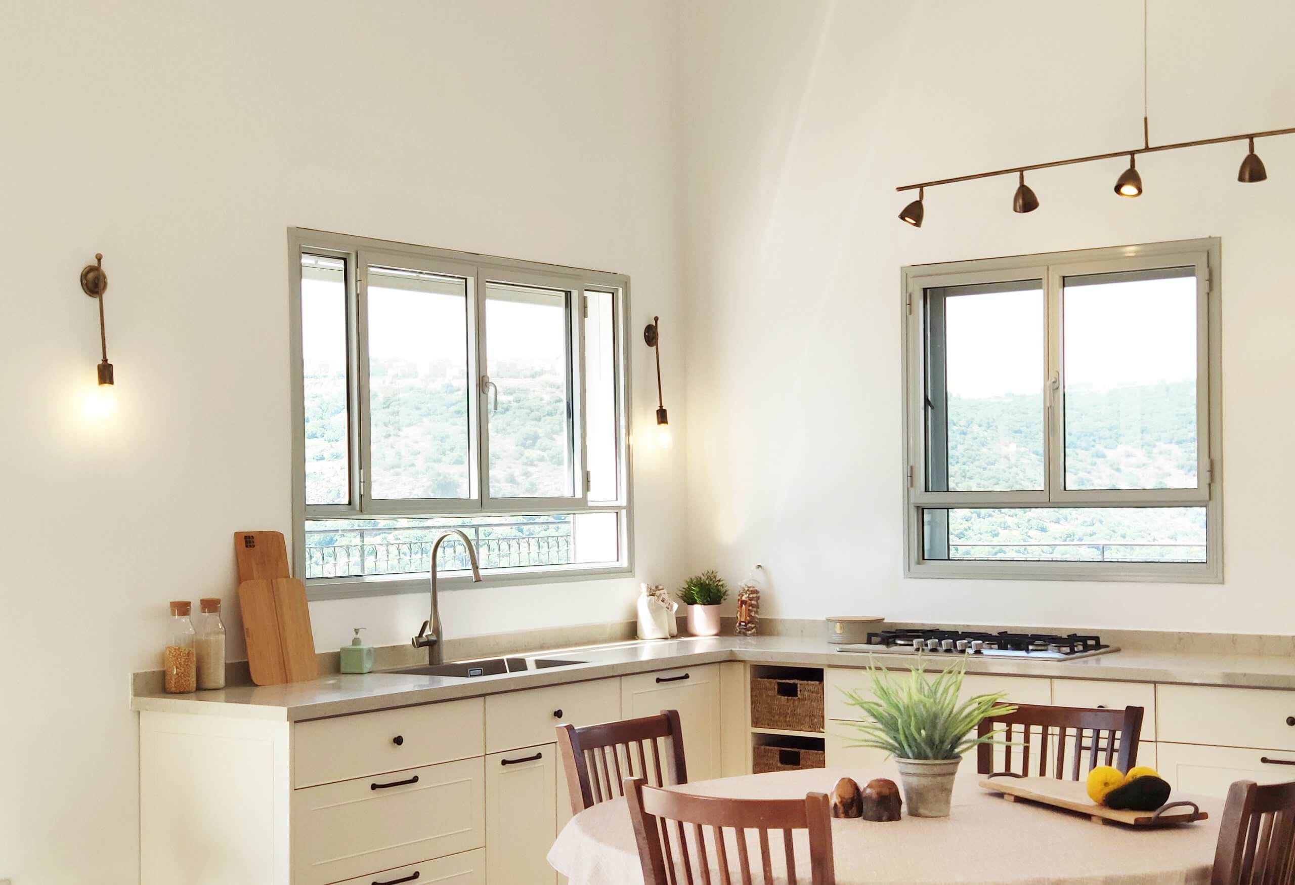 בלב הנוף, על שפת הוואדי, תוכנן בית שצופה אל החוץ ועוטף מבפנים. תחת גג עץ חשוף וחמים מתקיים מפגש בין אסתטיקה גבוהה לפרקטיקה של בית חי עם חמישה ילדים. חמש מדרגות מפרידות בין החלל המרכזי לאגף הפרטי, במרחב שכולו רגעים משפחתיים ומה שביניהם.